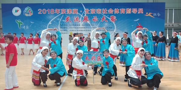 | 2018年京津冀·北京市社会体育指导员交流展示大赛6月21日-22日在北京举行。来自天津、河北、北京市有关单位以及新华社和航天二院代表队的一线社会体育指导员近1500人参加大赛。本次比赛由北京市体育局、北京市体育总会主办,北京市社会体育管理中心、北京市体育总会秘书处、北京市社会体育指导员协会承办。